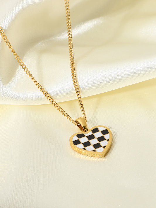 Checkerboard Heart Pendant Chain Necklace