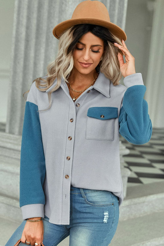 Two-Tone Dropped Shoulder Jacket with Breast Pocket