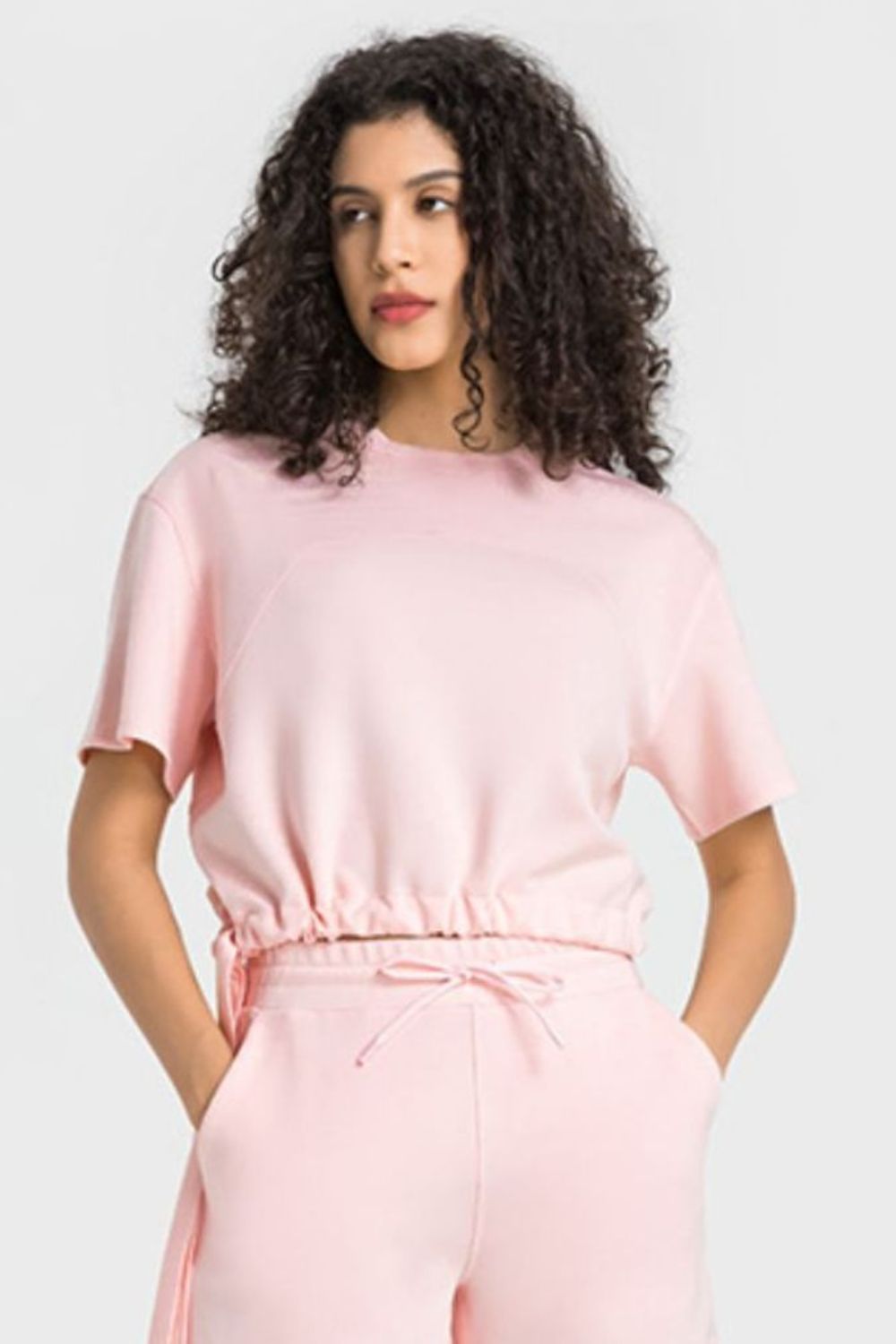 Drawstring Hem Short Sleeve Sports T-Shirt