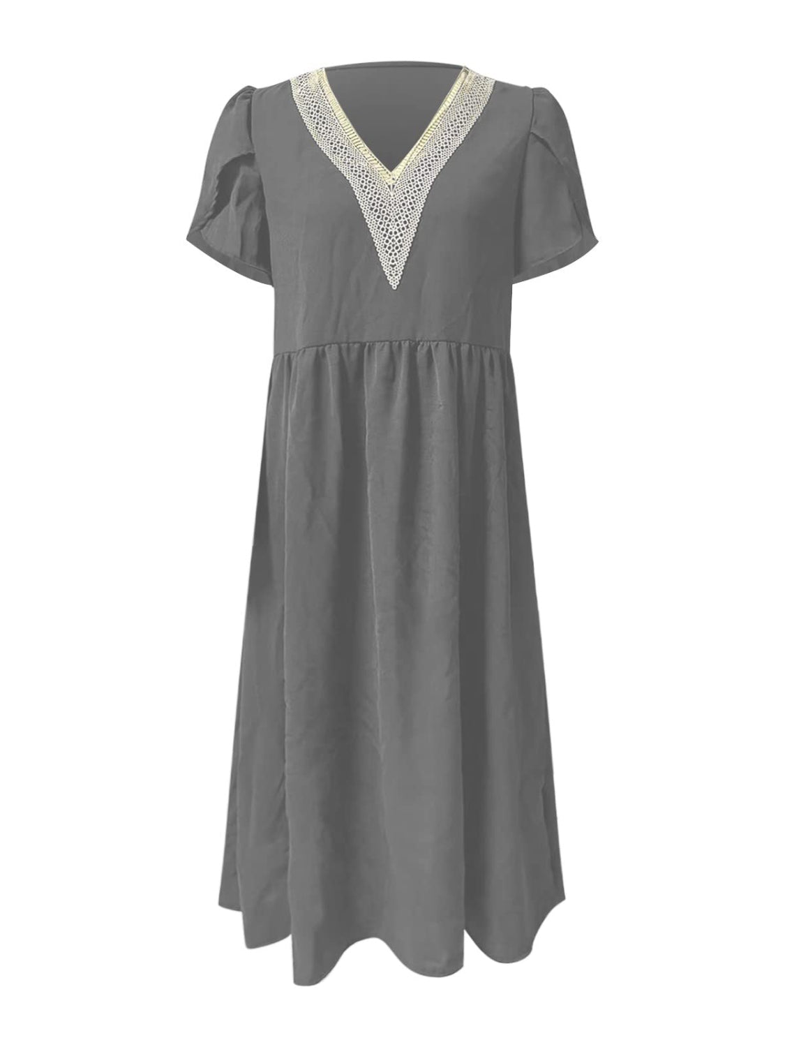 Full Size Lace Detail V-Neck Short Sleeve Dress