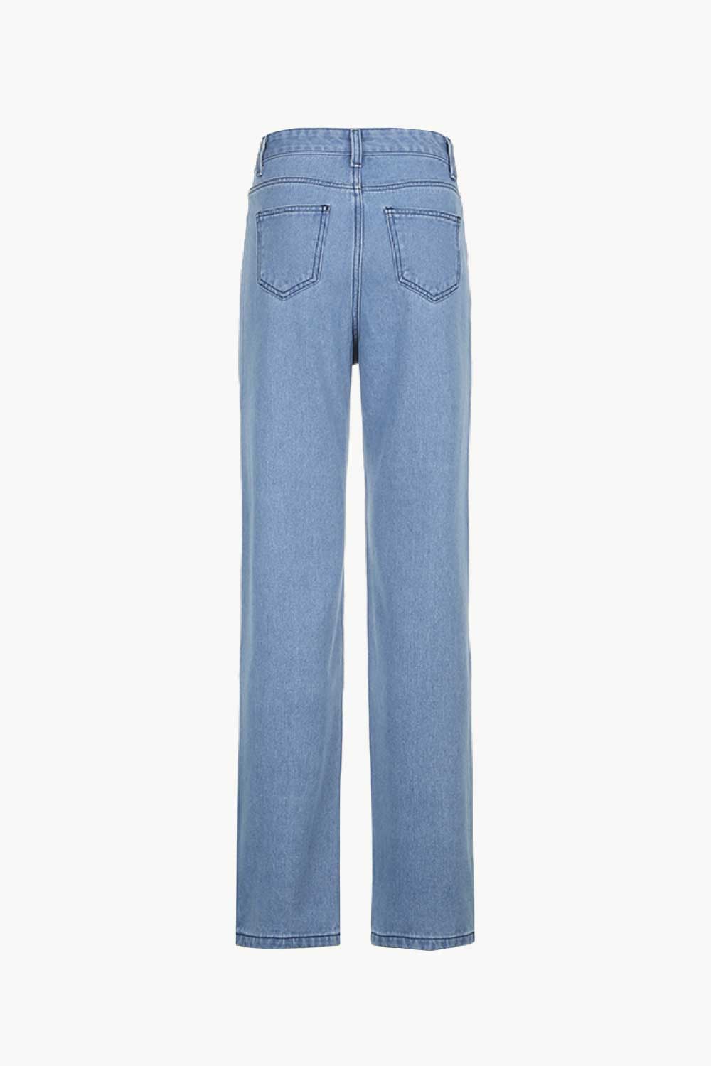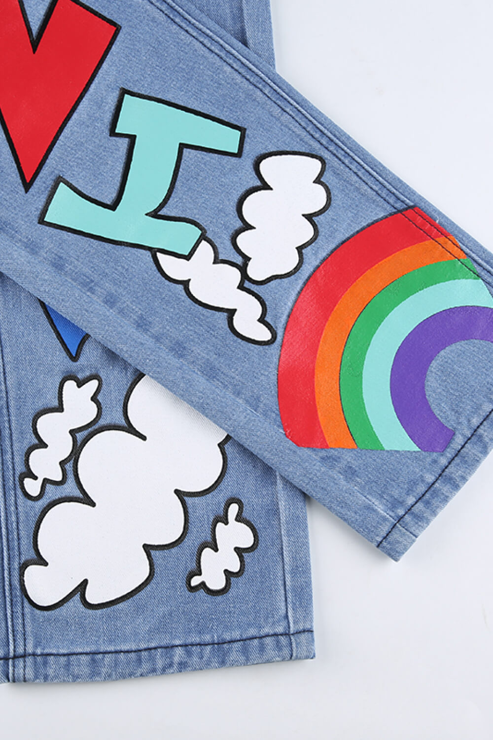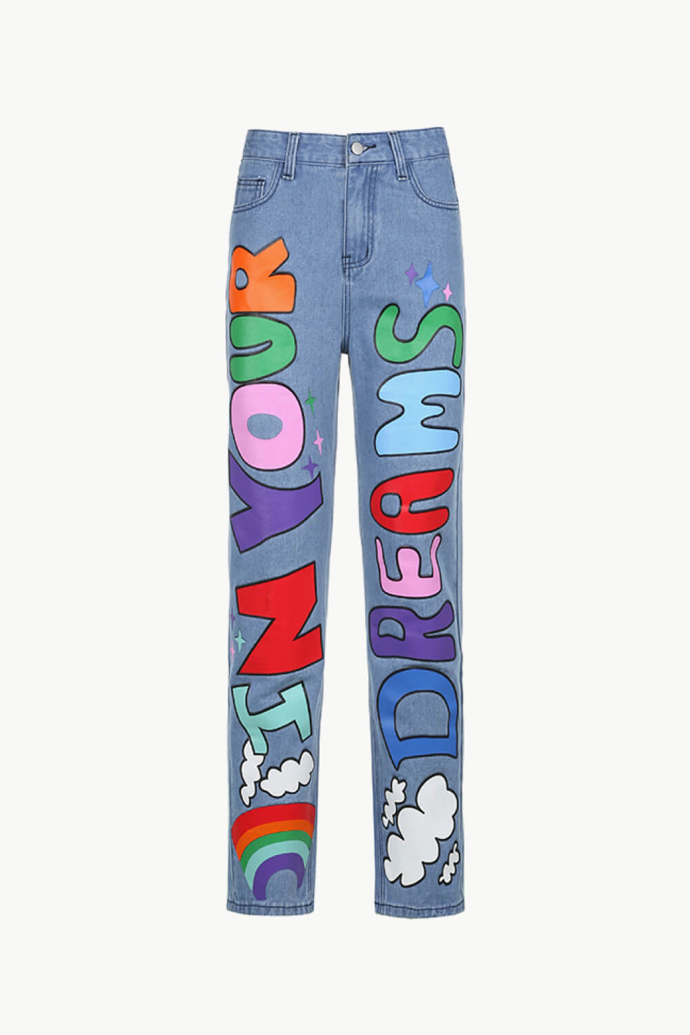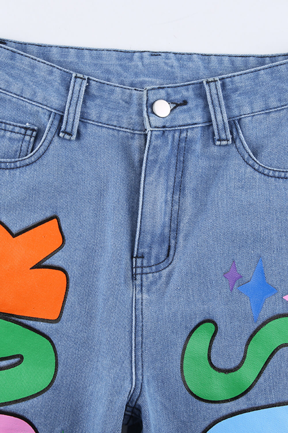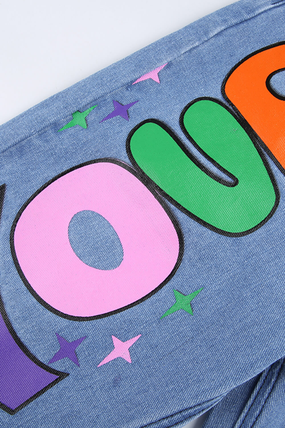 Letter Print High-Waisted Jeans