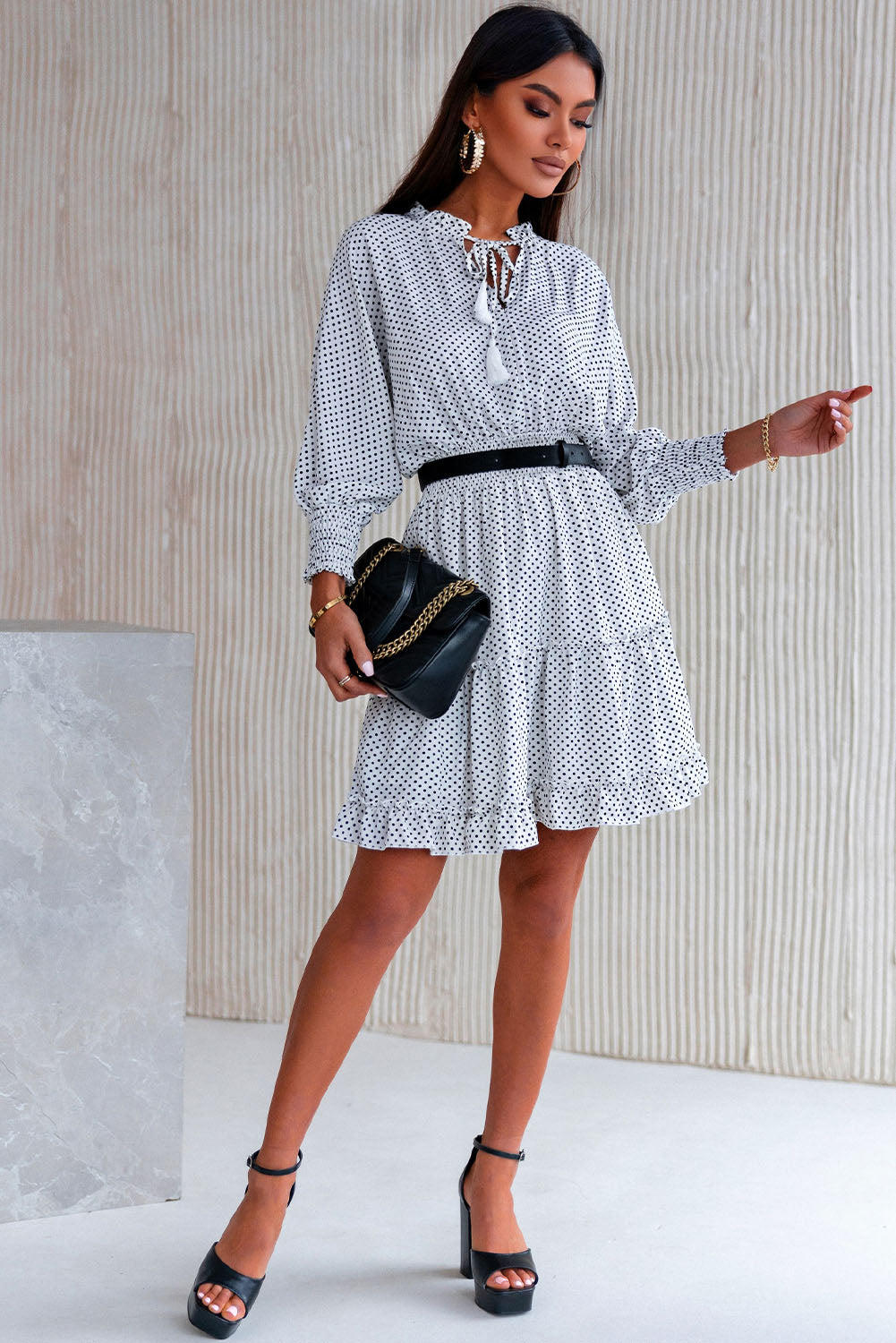 Polka Dot Tassel Tie Ruffle Hem Dress