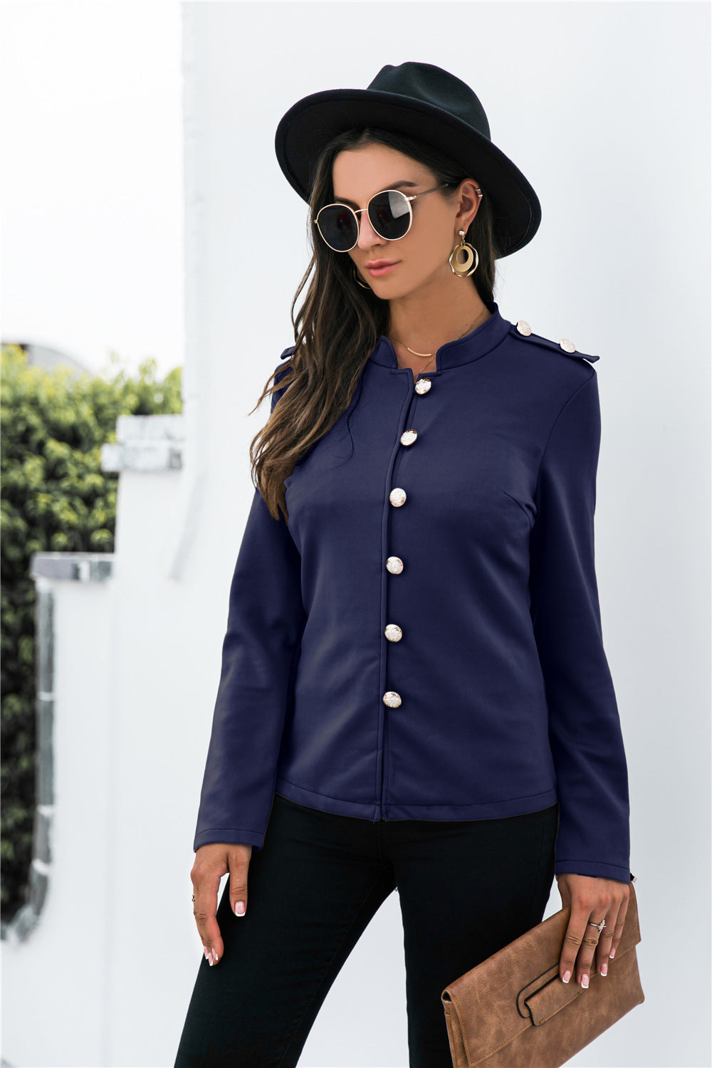 - Feature: Long sleeve, single breasted, patchwork, slim fit