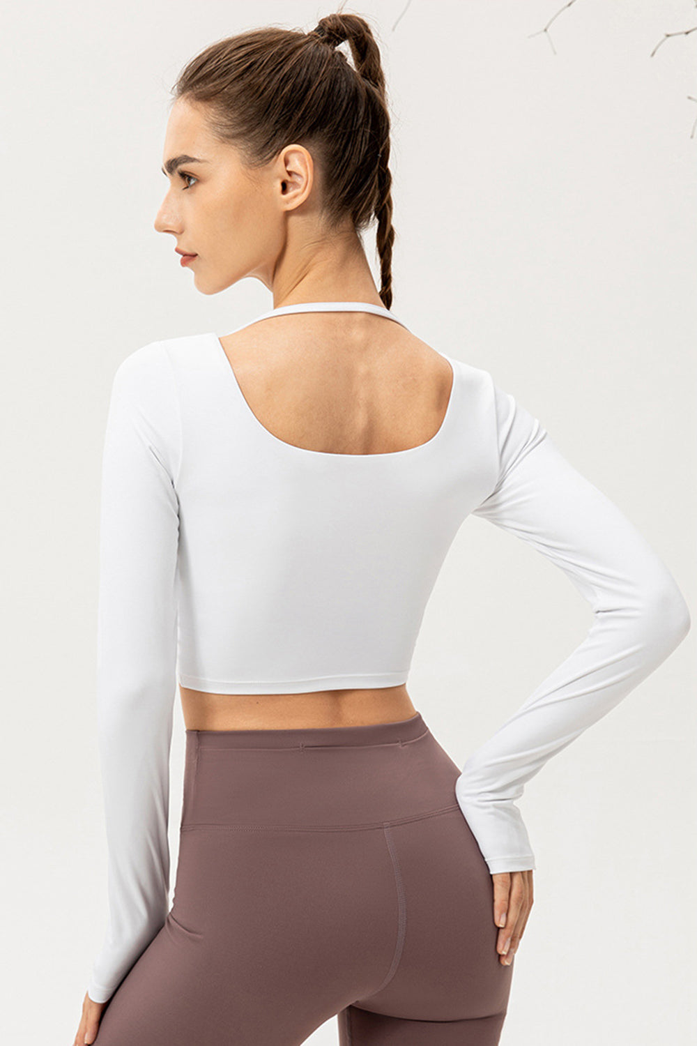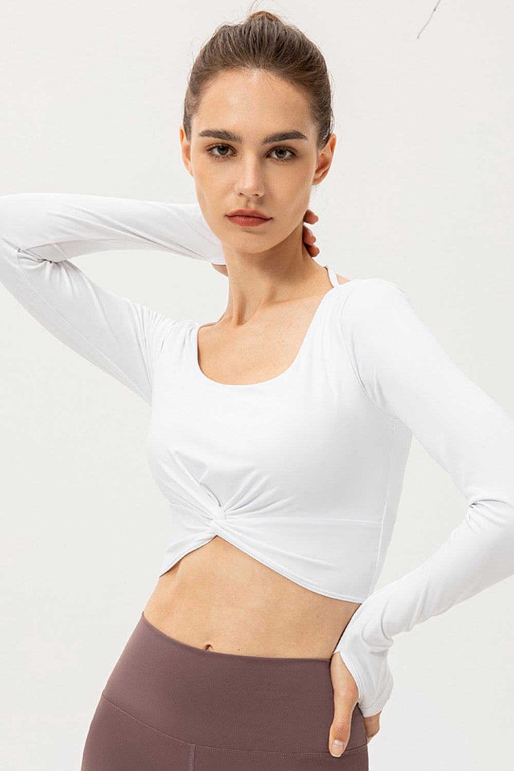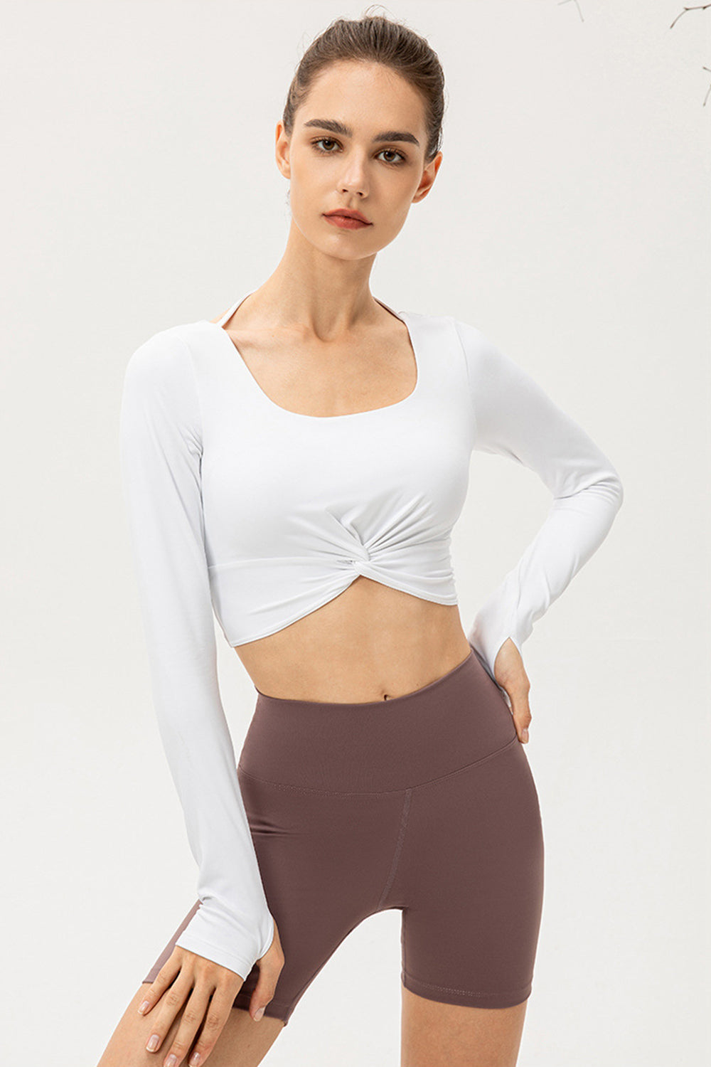 Twist Front Square Neck Long Sleeve Cropped Sports Top